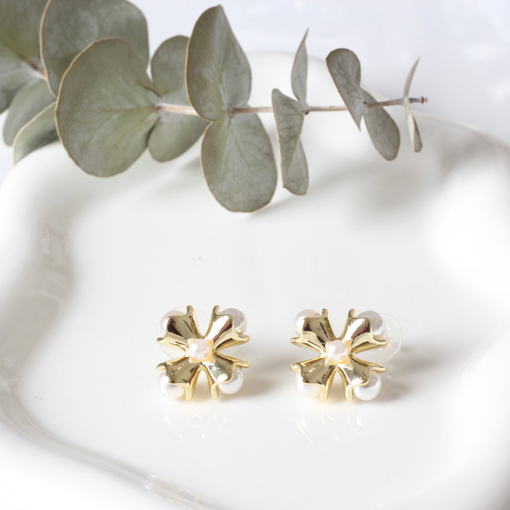 arete cruz 4 perlas